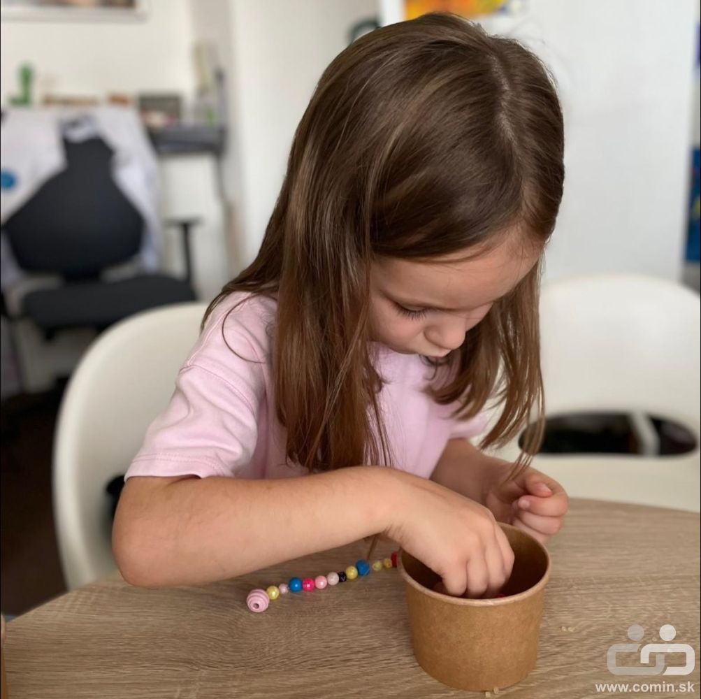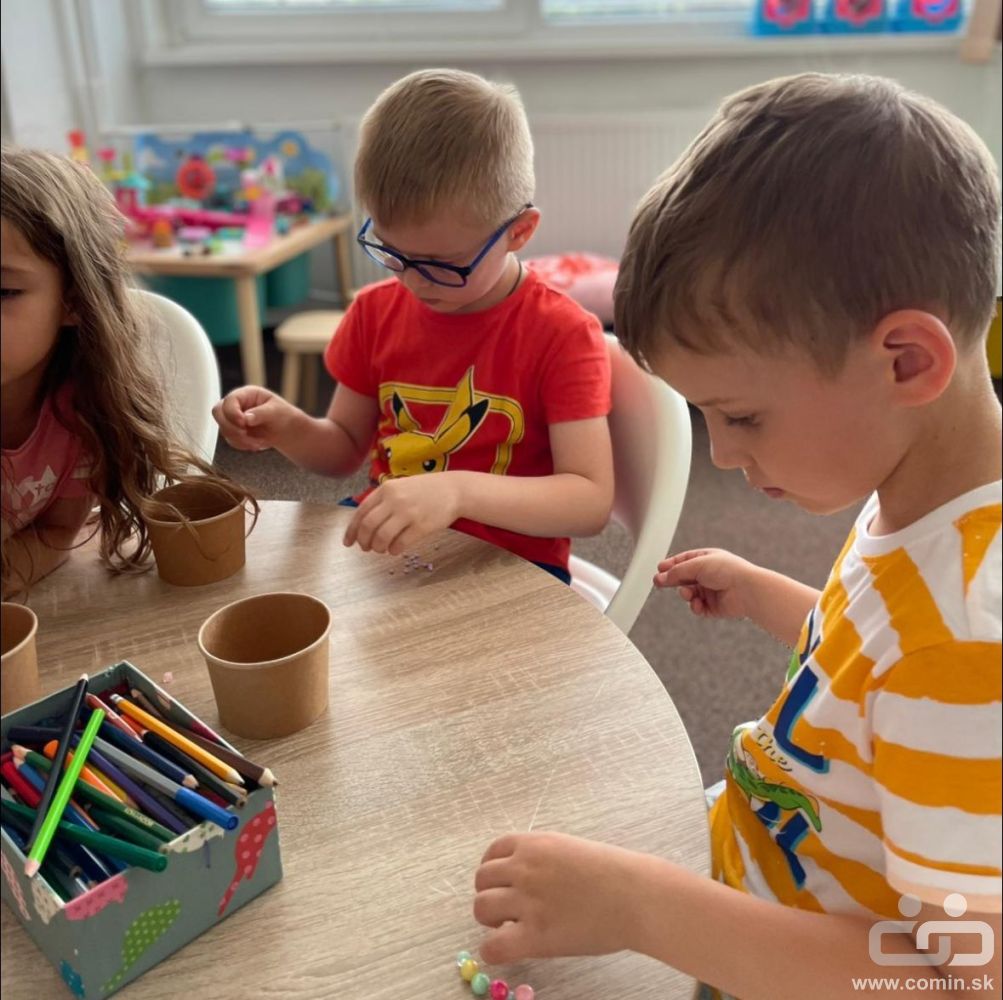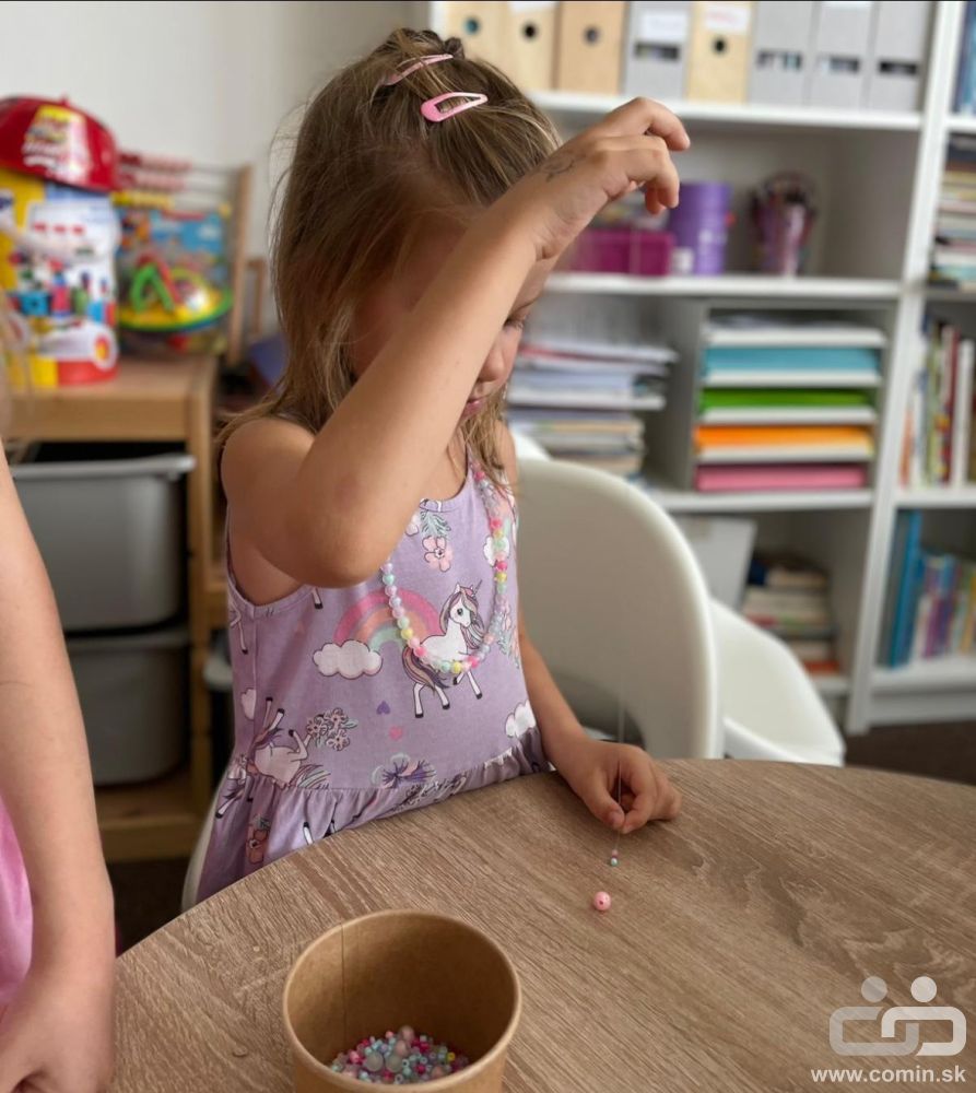 Farebné korálky, jemná motorika a sústredenie boli v hlavnej úlohe. Deti si precvičili prsty, zrak aj pozornosť a zároveň sa učili pomenúvať farby po slovensky.